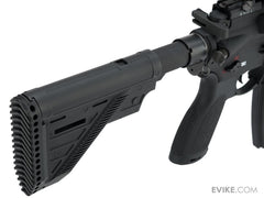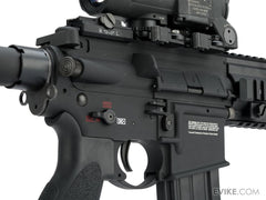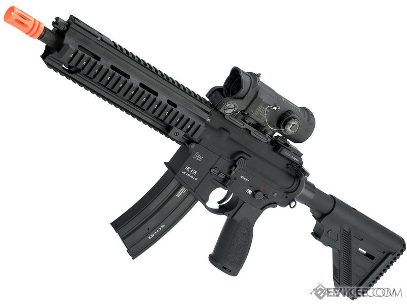 The HK 416 A5 AEG is a licensed, authentic replica of the real 416 A5 rifle made by world renowned firearms manufacturer Heckler & Koch. Favored by Special Forces for its Over The Beach (OTB) capability and remarkable reliability, the H&K 416 is a proven weapons platform that features all the improvements of a modern rifle coupled with the familiarity of a proven weapons system.